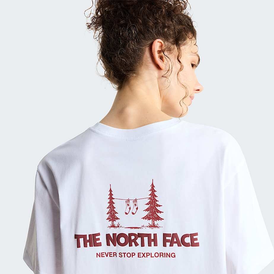 Gerçek The North Face® tarzına sahip yumuşak ve nefes alabilir Camping Relaxed Graphic Tişört kabartma baskı ve su bazlı baskı tekniklerinin karışımıyla dikkat çekici bir görünüme sahiptir.