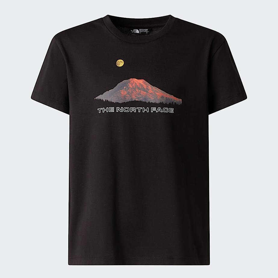 Gerçek The North Face® tarzına sahip, %100 pamuklu Mountain Night Relaxed Tişörtün keşfederken tarzından ödün vermemen için sırt bölümünde görsel yer alır.