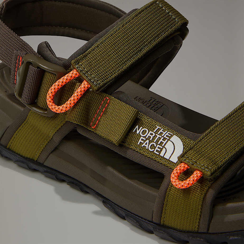 - ÜST PARÇA: Sandalet dayanıklı ve sürdürülebilirlik odaklı bir tasarıma sahiptir: Nefes alabilir ve suya dayanıklı üst parçanın örgü kayışları, ağ astarı, tokası ve çekme halkaları gibi bütün bölümleri %97’ye kadar geri dönüştürülmüş P.E.T. içerikten üretilir